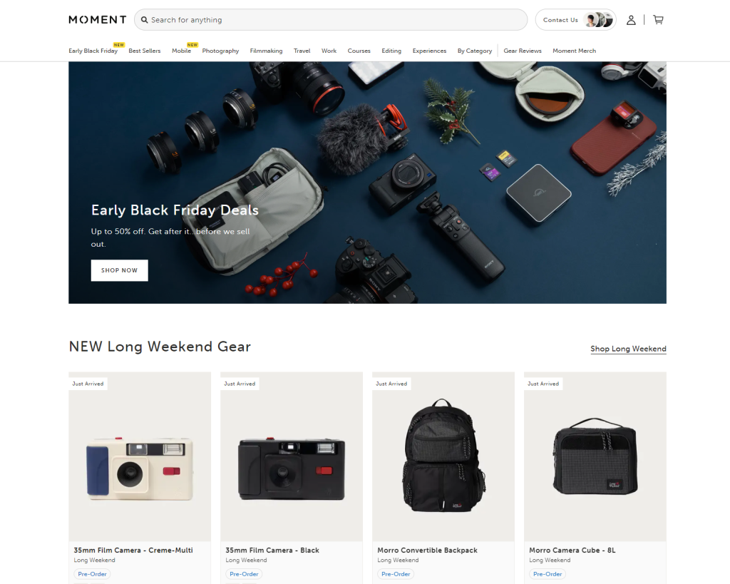 Moment has done an incredible job collaborating with brands. They started by just selling their own products (high quality lenses for phone cameras) but they developed into a digital marketplace for all things photography and filmmaking. With smartphone cameras adding lenses and getting better each year the demand for their pro lenses would naturally decrease. Moment began to proactively partner with other brands which was a very smart move and has helped them flourish.