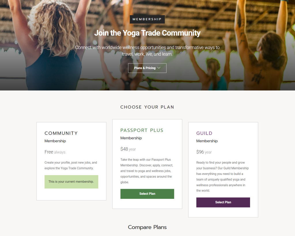 One of our Client’s Yoga Trade lets you create a free profile, but in order to get full access or apply for jobs you have to actually sign up for a paid plan. The free membership helps ease the customer into the brand and provides truly valuable content and resources. While experiencing this, they also see the incredible benefits that becoming a paid member can add.