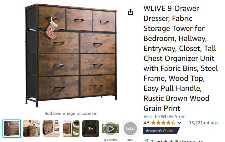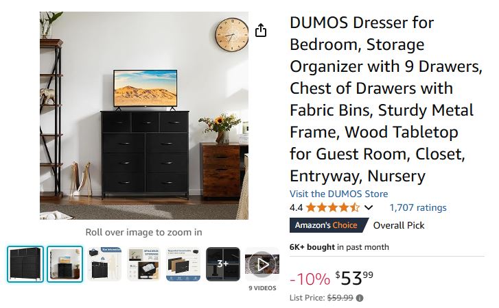 Let’s consider this example from Amazon. Let’s say you’re browsing for a new bedroom dresser and you come across the two products shown above. They’re the exact same size and would both work perfectly for your space. Out of the two, which one would you be more drawn to choose?