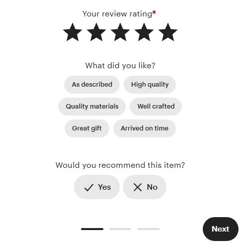 Take a look at this simple yet effective way Etsy asks for their customers’ experience.